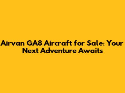 Hey everyone, are you guys in the market for a seriously versatile and rugged aircraft? Well, you're in luck because we're diving deep into the world of the Airvan GA8 for sale. This beauty isn't just another plane; it's a workhorse designed for a multitude of missions, from cargo hauling to passenger transport, and even some serious bush flying. If you're looking for a reliable machine that can handle a variety of challenges, the GA8 might just be your perfect match. We'll be exploring what makes this aircraft so special, what to look for when buying one, and why it continues to be a popular choice for pilots and operators around the globe. So buckle up, because we're about to take off into the exciting realm of the Gipps Aero GA8 Airvan!