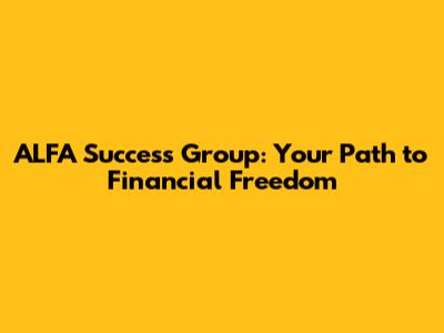 ALFA Success Group: Your Path To Financial Freedom