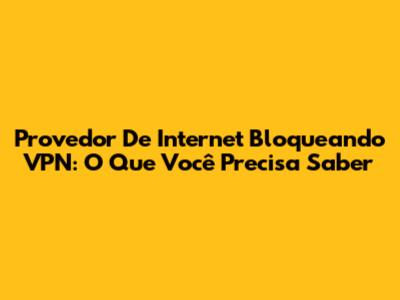Provedor De Internet Bloqueando VPN: O Que Você Precisa Saber