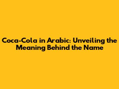 Coca-Cola in Arabic: Unveiling the Meaning Behind the Name