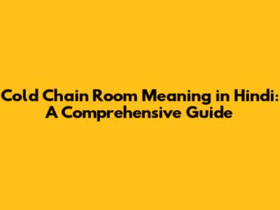 Cold Chain Room Meaning In Hindi: A Comprehensive Guide