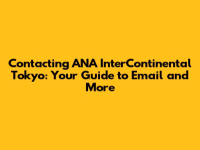 Finding the right email address is crucial for effective communication with the ANA InterContinental Tokyo. By systematically exploring the hotel's official website, checking your confirmation email, utilizing the general inquiry form, and leveraging social media and third-party booking sites, you can increase your chances of reaching the appropriate department and receiving timely assistance. Remember to be clear and concise in your communication to ensure your inquiries are addressed efficiently.