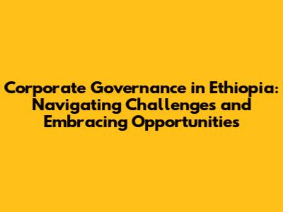 Corporate Governance In Ethiopia: Challenges And Opportunities