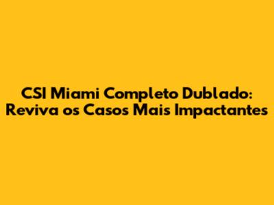 E aí, galera fã de mistério e investigação! Se você, assim como eu, adora mergulhar em tramas policiais cheias de reviravoltas, temos uma novidade que vai fazer seu coração bater mais forte. Estou falando da série CSI: Miami Completo Dublado, um clássico que marcou época e que agora pode ser revisitado na íntegra, com toda a emoção do áudio em português. Para quem viveu os anos 2000 ou para as novas gerações que querem conhecer um dos pilares do gênero procedimental policial, essa é a oportunidade de ouro. Vamos relembrar os momentos icônicos, os personagens inesquecíveis e os casos que deixaram o público grudado na tela, esperando para descobrir quem era o culpado. A série se destacou não apenas pela qualidade da investigação, mas também pelo seu estilo visual único, com a fotografia vibrante de Miami e a trilha sonora contagiante, que, somados ao áudio dublado em português, criam uma experiência imersiva e nostálgica para todos nós. Prepare a pipoca, ajuste o sofá, porque essa maratona de investigação está apenas começando, e vamos desvendar juntos porque CSI: Miami Completo Dublado continua sendo tão relevante e amada por tantos fãs ao redor do mundo, especialmente no Brasil, onde a dublagem de qualidade sempre foi um diferencial para a conexão com o público. É um convite para reviver a adrenalina de cada episódio e sentir a satisfação de ver a justiça sendo feita, sempre com aquele toque especial que só Miami pode oferecer.