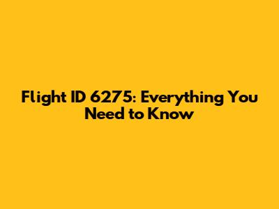 Flight ID 6275: Everything You Need To Know