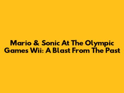 Mario & Sonic At The Olympic Games Wii: A Blast From The Past