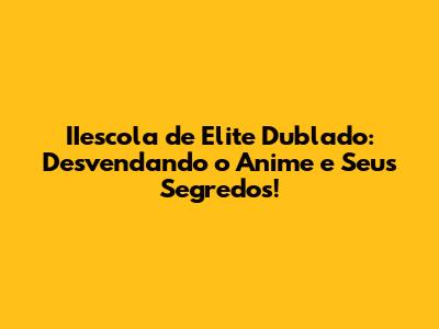 Olá, pessoal! Se você é fã de anime e está sempre em busca de novas aventuras, prepare-se! Hoje, vamos mergulhar no mundo de "IIescola de Elite Dublado". Vamos explorar tudo sobre este anime intrigante, desde a história envolvente até onde você pode assistir com a dublagem que você tanto ama. Então, pegue sua pipoca, sente-se confortavelmente e vamos começar essa jornada!