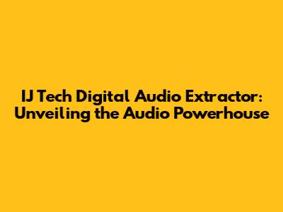 Unpacking the IJ Tech Digital Audio Extractor: What's the Buzz?