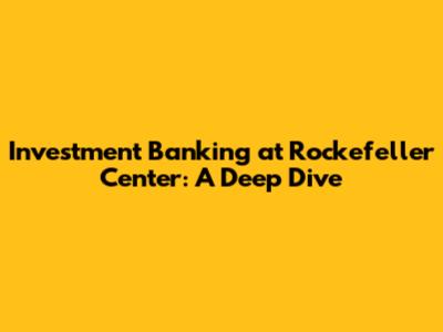Hey guys, let's talk about something that sounds super fancy and impressive: Investment Banking at Rockefeller Center! This isn't just about suits and briefcases; it's a whole world of finance, deals, and some seriously amazing architecture. So, let's dive in and explore what makes this such a fascinating and significant hub. We'll break down what investment banking is, why Rockefeller Center is the perfect location for these firms, and how it all works together. Get ready to learn about the power players, the types of deals they handle, and how this iconic location plays a crucial role in the financial world. Buckle up, because it's going to be a fun ride!