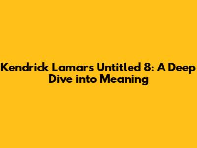 Kendrick Lamar's 'Untitled 8': A Deep Dive Into Meaning