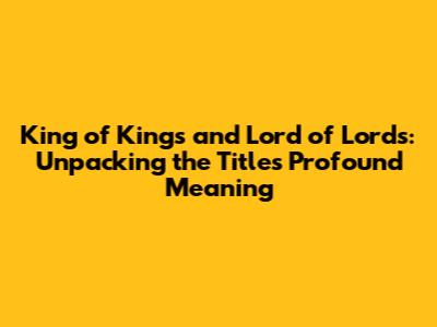 King Of Kings And Lord Of Lords: Understanding The Title's Significance