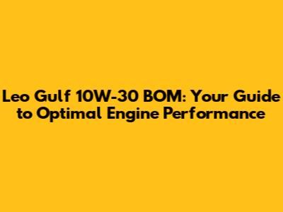 Leo Gulf 10W-30 BOM: Your Guide To Optimal Engine Performance