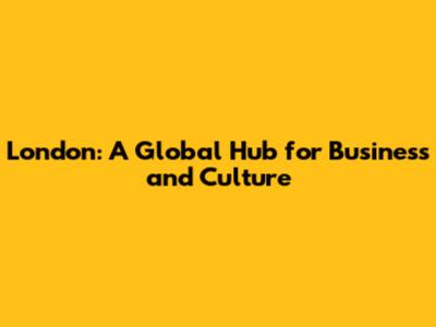 London: A Global Hub For Business And Culture