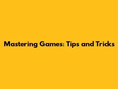 Mastering Games: Tips And Tricks