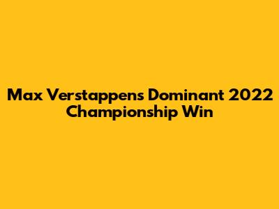 Max Verstappen's Dominant 2022 Championship Win