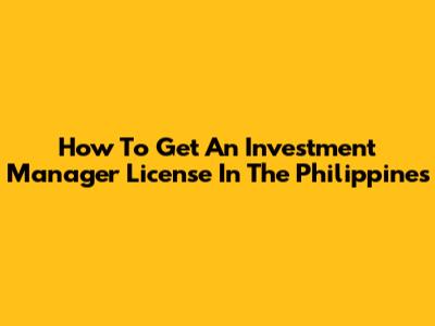 How To Get An Investment Manager License In The Philippines