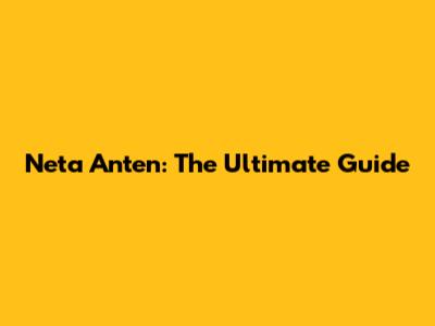 Neta Anten: The Ultimate Guide