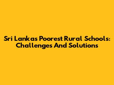 Sri Lanka's Poorest Rural Schools: Challenges And Solutions