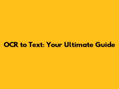 OCR To Text: Your Ultimate Guide