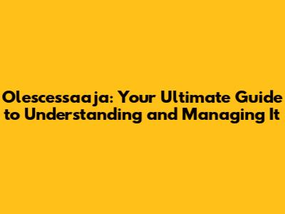 Olescessaaja: Your Ultimate Guide To Understanding And Managing It