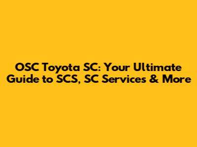 What is OSC Toyota SC? Understanding the Basics