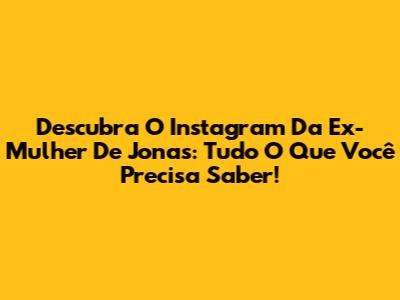 Descubra O Instagram Da Ex-Mulher De Jonas: Tudo O Que Você Precisa Saber!