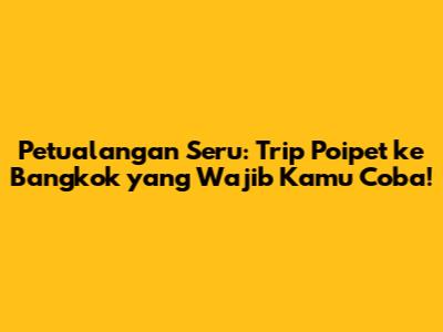 Trip Poipet ke Bangkok – Guys, siapa di sini yang suka banget nge-travel dan pengen punya pengalaman seru yang beda dari biasanya? Nah, kali ini kita bakal bahas tentang perjalanan seru dari Poipet, sebuah kota perbatasan di Kamboja, menuju gemerlapnya Bangkok, Thailand. Perjalanan ini bukan cuma sekadar pindah dari satu tempat ke tempat lain, tapi juga sebuah petualangan yang penuh tantangan, kejutan, dan pastinya, kenangan yang nggak bakal bisa kalian lupain. So, siap-siap buat nyatet tips-tipsnya, karena kita bakal kupas tuntas semua hal yang perlu kalian tahu sebelum memulai trip ini!