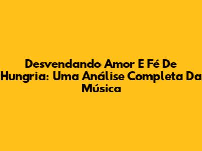 Desvendando 'Amor E Fé' De Hungria: Uma Análise Completa Da Música