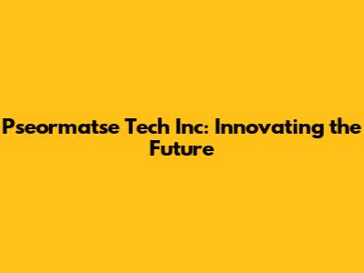 Pseormatse Tech Inc: Innovating The Future