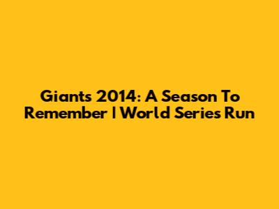 Giants 2014: A Season To Remember | World Series Run