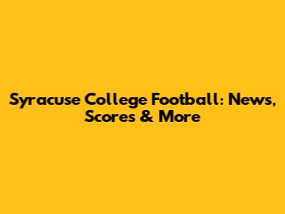 Syracuse Football: News, Scores & More