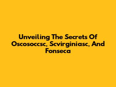 Unveiling The Secrets Of Oscosoccsc, Scvirginiasc, And Fonseca
