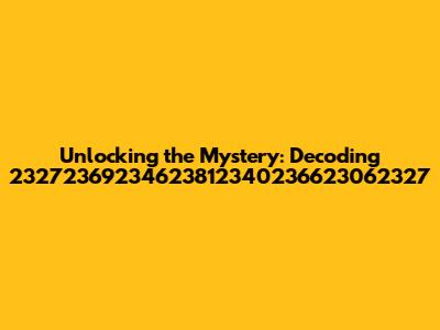 Hey guys! Ever stumbled upon a random string of numbers that just makes you scratch your head? Today, we're diving deep into the enigmatic world of seemingly random numbers, specifically focusing on what we can possibly do with the number 23272369234623812340236623062327. It looks like a jumbled mess, but who knows? Maybe there's a hidden meaning or a practical application lurking beneath the surface. Let's put on our detective hats and explore the possibilities, from its potential as a unique identifier to its use in cryptographic functions. Remember, in the vast ocean of data, every number has a story, even if it's a bit abstract.