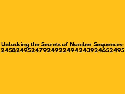Hey guys! Ever stumble upon a sequence of numbers and wonder, "What in the world is going on here?" Well, today we're diving deep into the fascinating world of number sequences, with a specific focus on the enigmatic 24582495247924922494243924652495. Now, I know what you're thinking: that's a mouthful! But trust me, breaking down and understanding these types of sequences can be incredibly rewarding. It’s like being a detective, piecing together clues to solve a mathematical mystery. This sequence, in particular, may seem daunting at first glance, but with the right tools and a little bit of patience, we can unlock its secrets. So, buckle up, grab your calculators, and let's get started. We'll explore various analytical methods, potential patterns, and hopefully gain a deeper understanding of what this sequence might represent or signify. It's important to remember that without additional context, analyzing a sequence like this can be challenging. However, we'll cover several approaches that can be applied to many sequences, including identifying potential patterns, using mathematical tools to check for different sequence types, and analyzing the characteristics of the numbers themselves.
