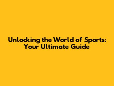 Unlocking The World Of Sports: Your Ultimate Guide