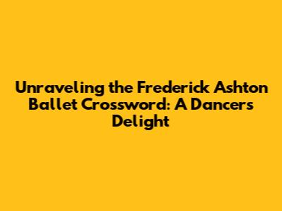 Diving into the World of the Frederick Ashton Ballet Crossword