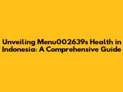 Unveiling Menu002639's Health In Indonesia: A Comprehensive Guide