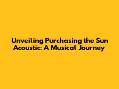 Unveiling 'Purchasing The Sun' Acoustic: A Musical Journey