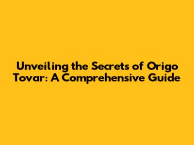 Unveiling The Secrets Of Origo Tovar: A Comprehensive Guide