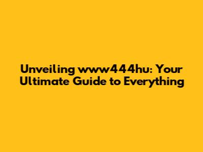 Unveiling Www444hu: Your Ultimate Guide To Everything