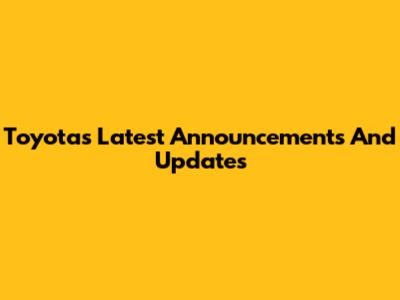 Toyota's Latest Announcements And Updates
