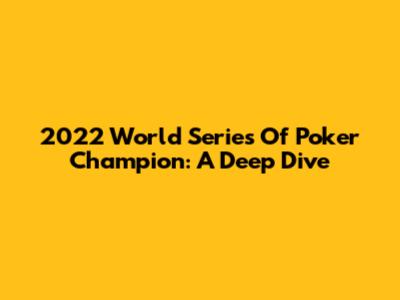 2022 World Series Of Poker Champion: A Deep Dive