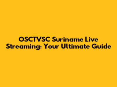 Watch OSCTVSC Suriname Live: Your Ultimate Streaming Guide