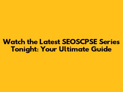 Watch The Latest SEOSCPSE Series Tonight