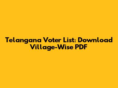 Telangana Voter List: Download Village-Wise PDF